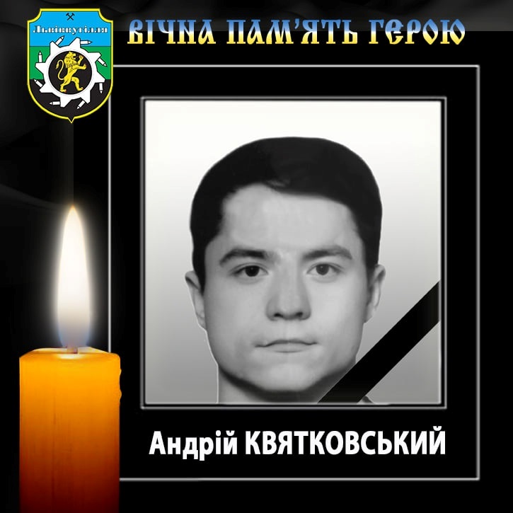 У бою з російськими загарбниками загинув червоноградець Андрій Квятковський 1992 року народження. Допис про це розмістили на офіційній сторінці Червоноградської міської ради у Facebook.